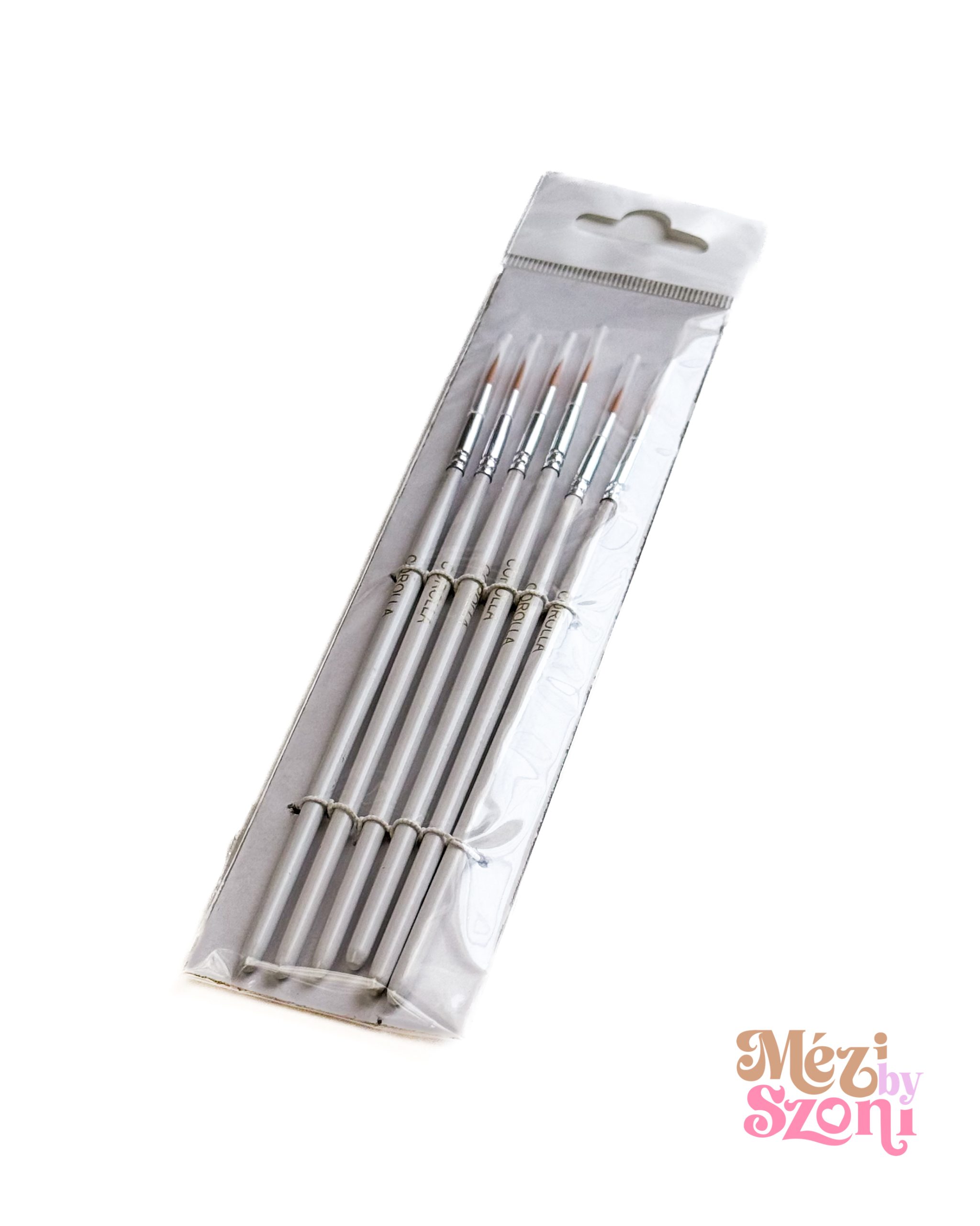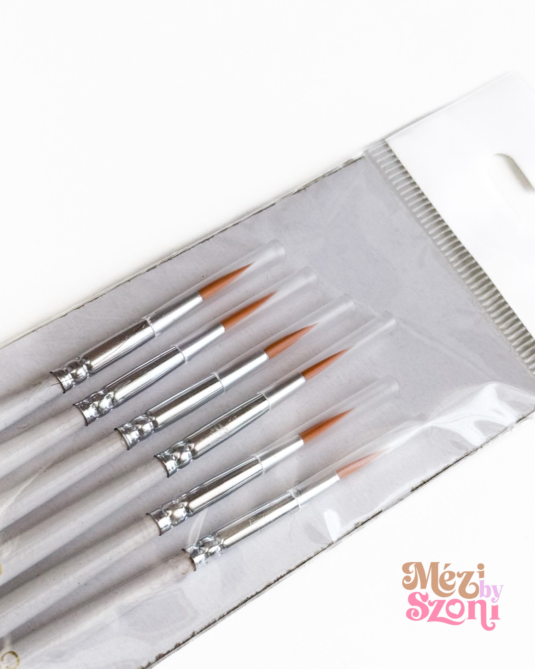 A szettben 6 db egyforma, fehér nyelű nullás ecset van, így ha több színt használsz, nem kell minden váltásnál ecsetet mosogatni.